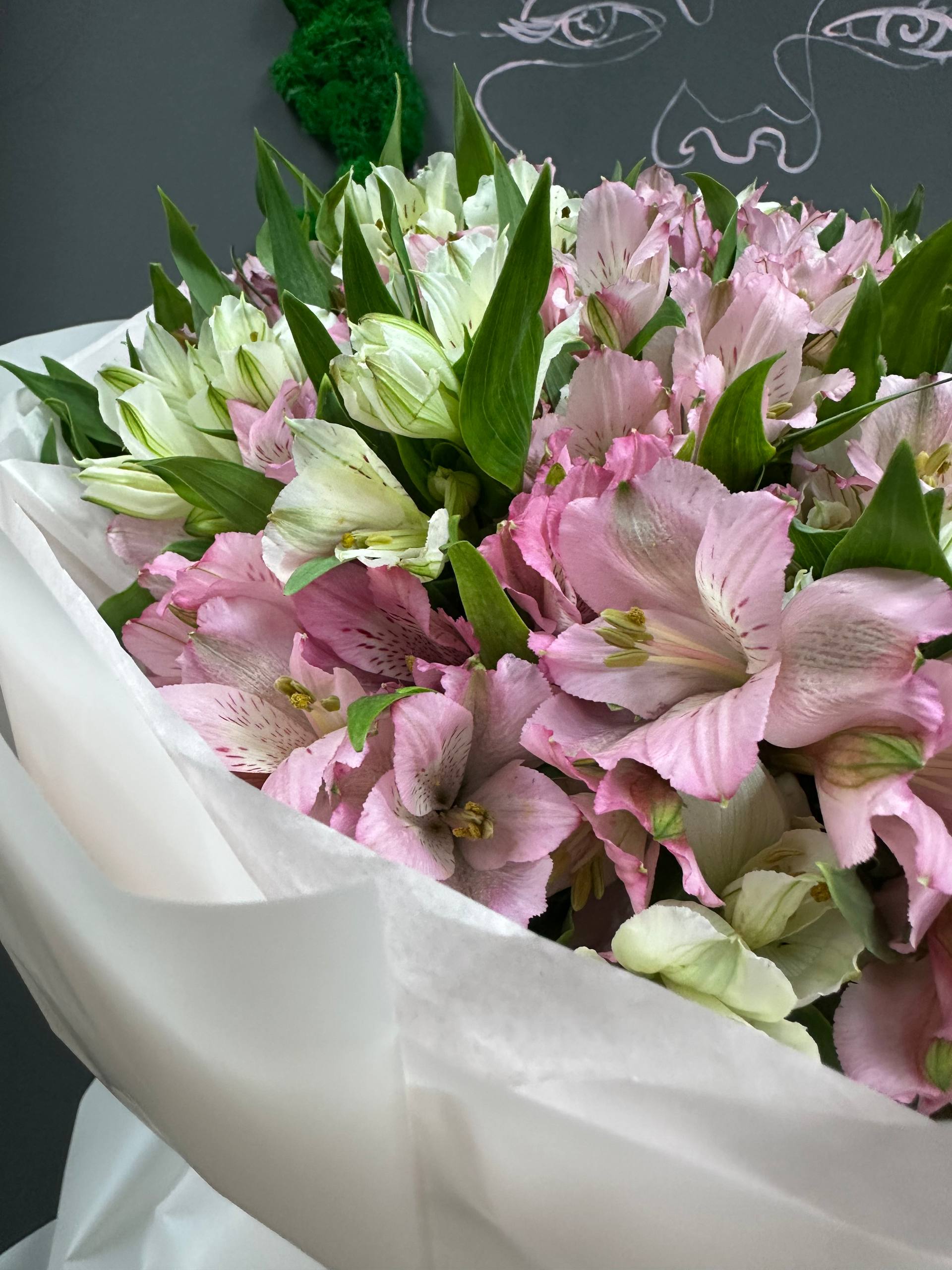 Букет микс из 51 белой и розовой альстромерии